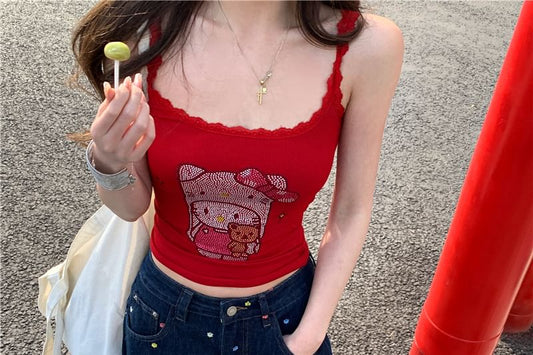 Short-Sleeve Off-Shoulder Plain Lace Trim Cropped T-Shirt