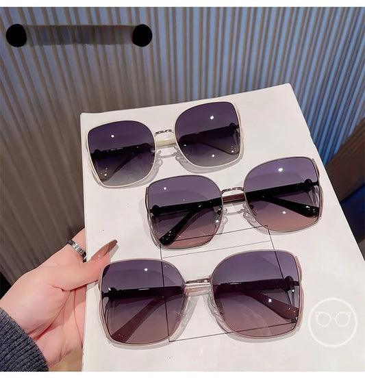 Oversized Square Metal Frame Polished Sunglasses / Case / Pouch / Cleaning Cloth / Set