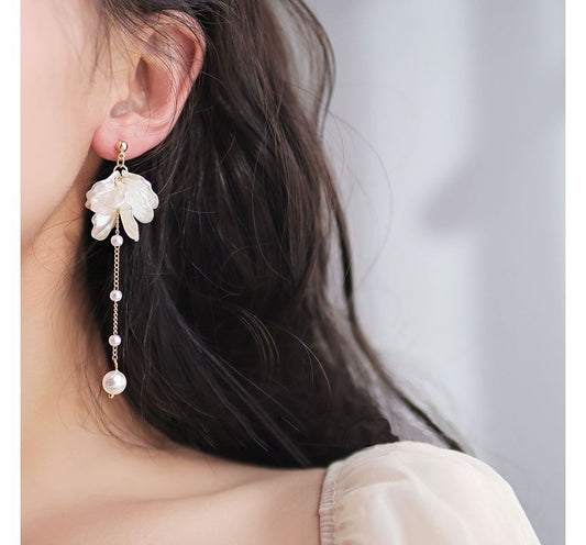 Petal Faux Pearl Drop Earring / Clip On Earring