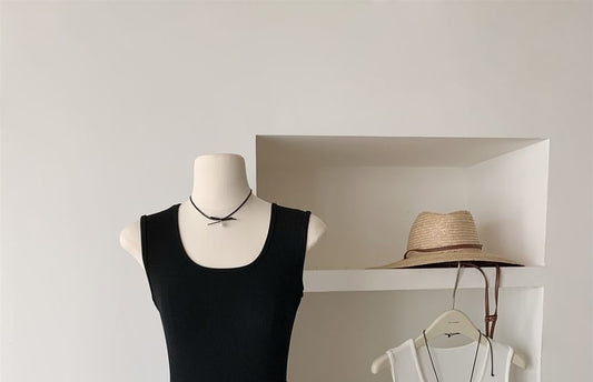 Sleeveless Scoop Neck Plain Ribbed Mini A-Line Dress