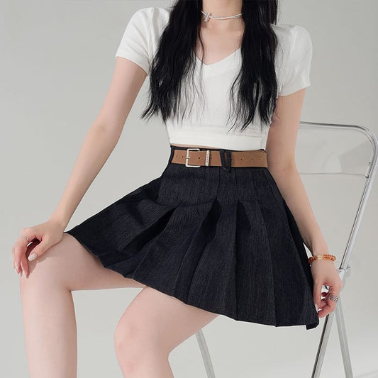 High Waist Plain Accordion Pleated Tiered Mini A-Line Skirt