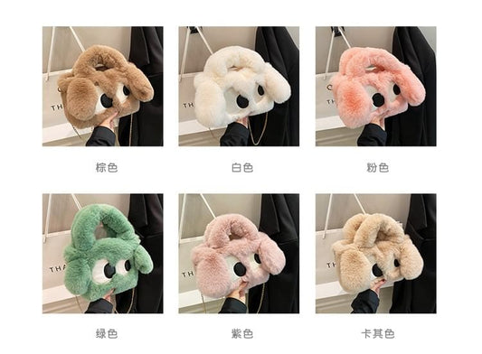 Chain Strap Eye Applique Fluffy Crossbody Bag