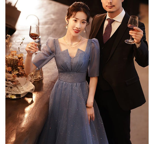 Gown Stand Tone A-Line Collar Short-Sleeve Two Evening