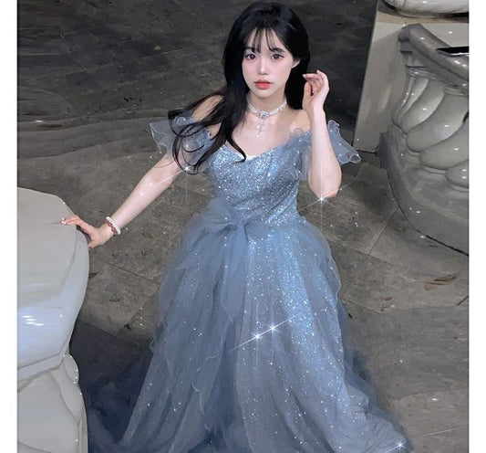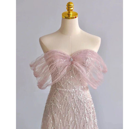 Gown Sequin Tube Trumpet Evening Bow Slit