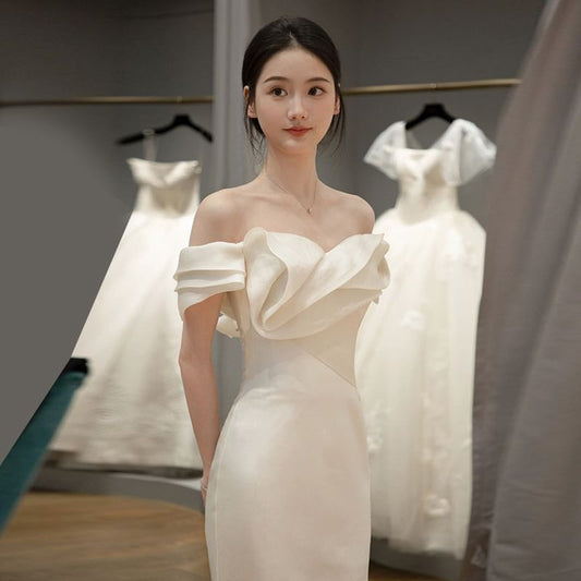 Gown Shoulder Plain Off Sheath Wedding Long-Sleeve