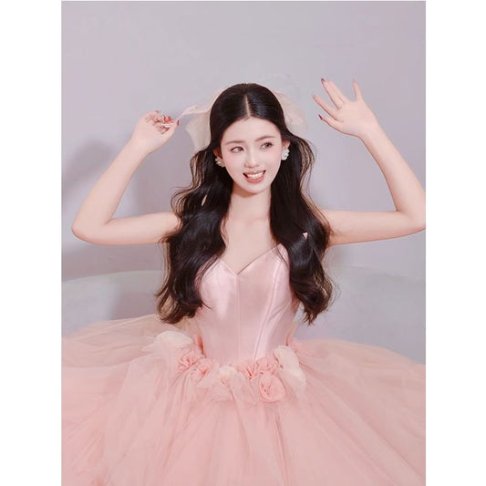 Mesh Evening Asymmetrical Strapless A-Line Fluffy Gown