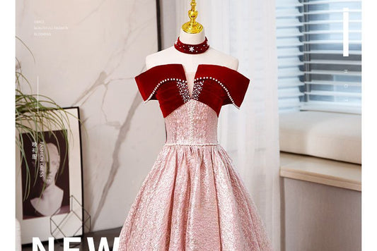 Off-Shoulder Two Tone Beaded A-Line Ball Gown