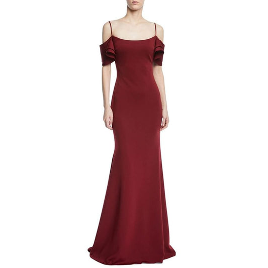 Open Evening Cold-Shoulder Plain Gown Back Maxi Short-Sleeve Sheath
