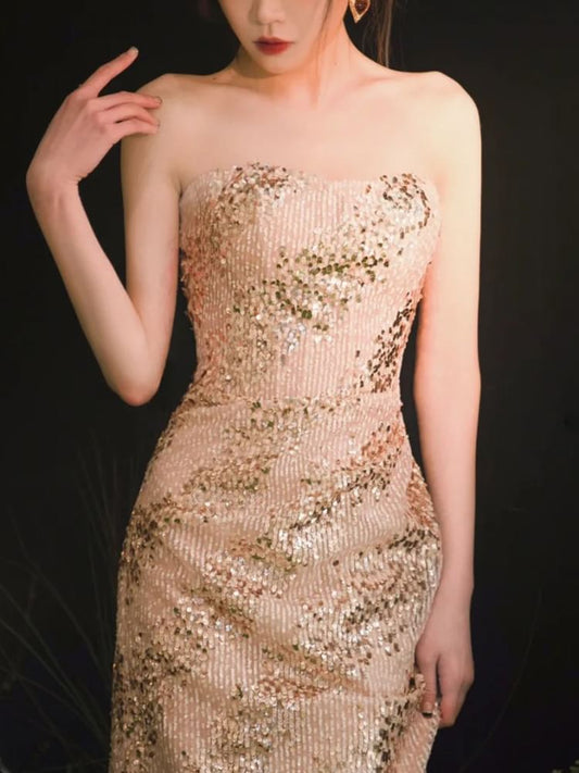 Sequin Sleeveless Trumpet Gown Evening Off-Shoulder