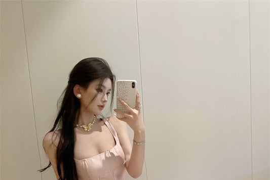 Spaghetti-Strap Faux A-Line Gown Evening Pearl