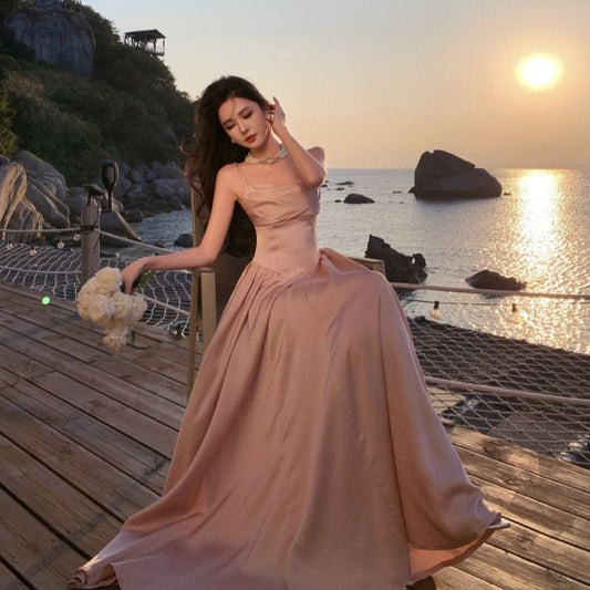 Spaghetti Strap Plain A-Line Evening Gown