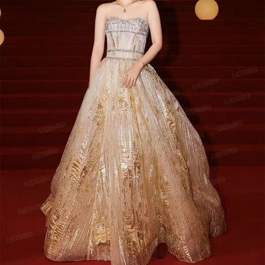 Spaghetti Strap Starry A-Line Evening Gown