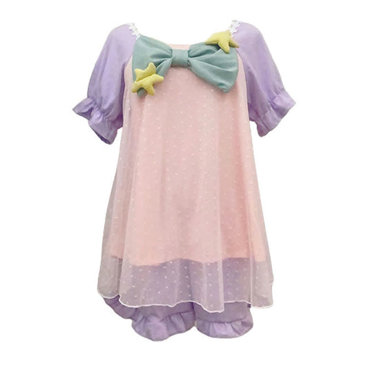 Pyjama-Set mit quadratischem Kragen, Schleife und Netzstoff im Meerjungfrauen-Stil