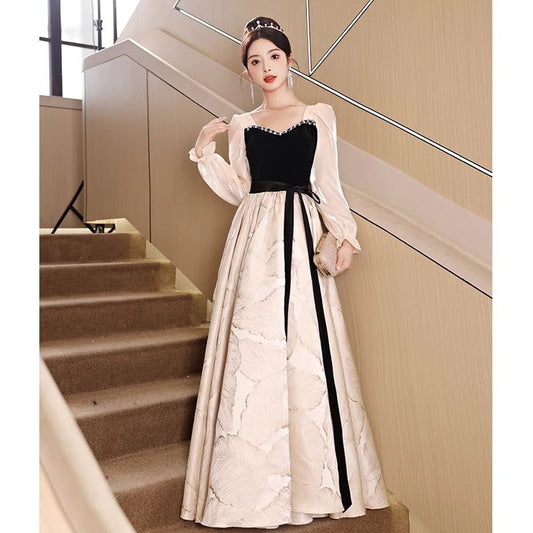 Square Gown Tone Neck Evening Long-Sleeve Two