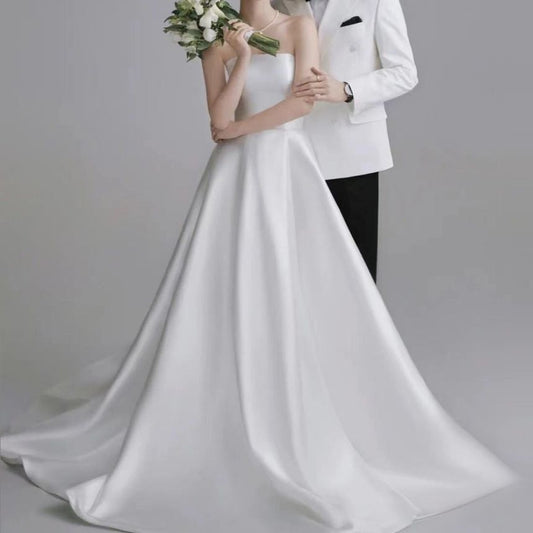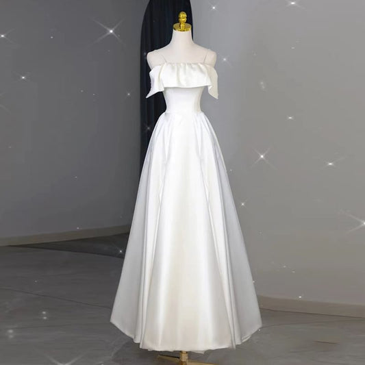 Strap Wedding Ruffle A-Line Spaghetti Plain Gown