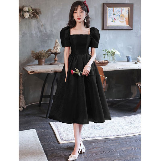Square Plain Evening A-Line Puff Gown Sleeve Neck