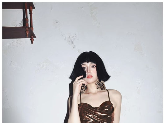 Spaghetti-Strap Plain Velvet Side Slit Evening Gown