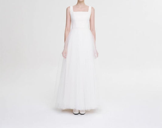 Square Wedding Neck Plain Jacquard A-Line Sleeveless Gown
