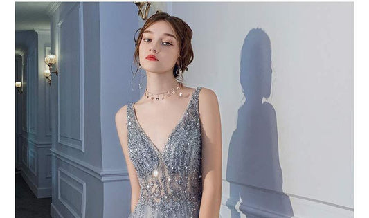 V-Neck Sleeveless Sequined A-Line Evening Gown