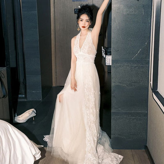 Wedding Mesh Gown Sequin Tube A-Line Panel Plain