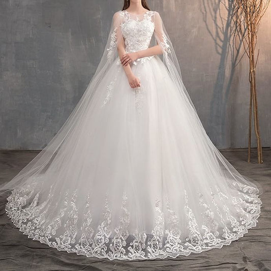 Wedding Gown Flower Flared-Sleeve Embroidered A-Line