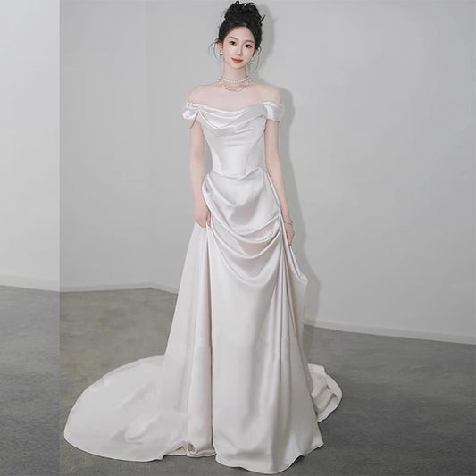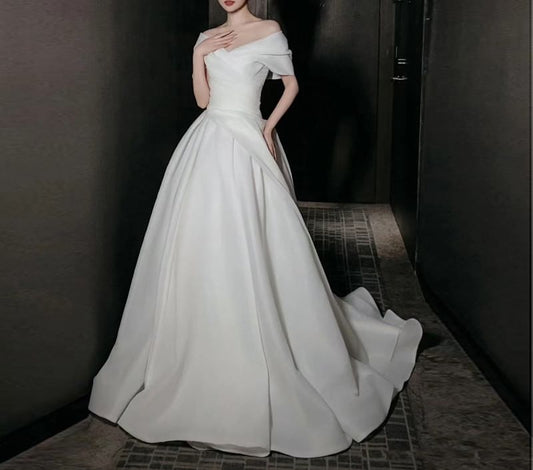 Wedding Gown Plain Sleeveless Off-Shoulder Ball