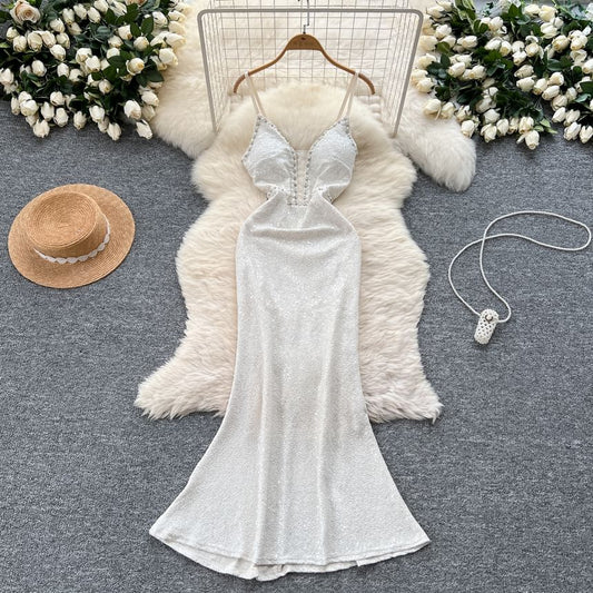 V-Neck Strap Gown Sequin Spaghetti Evening Mermaid