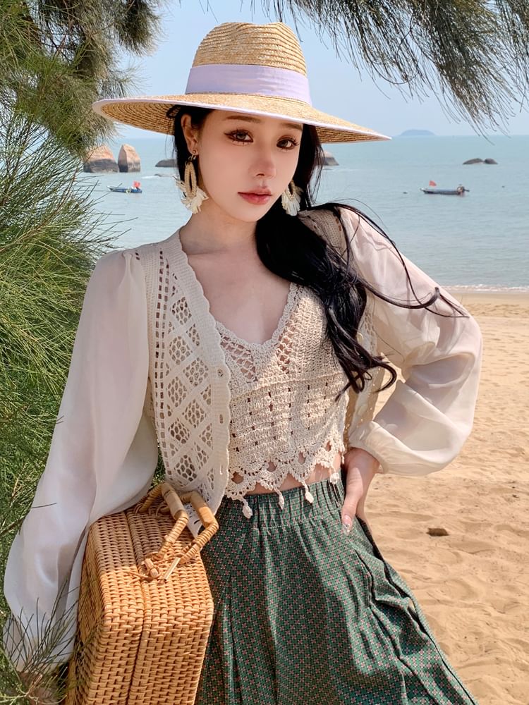 Print Skirt Embroidery Set Tassel Shirt Flower