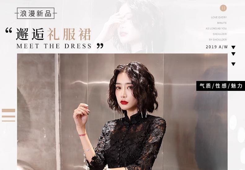Lace / Gown Dress Evening 3/4-Sleeve A-Line