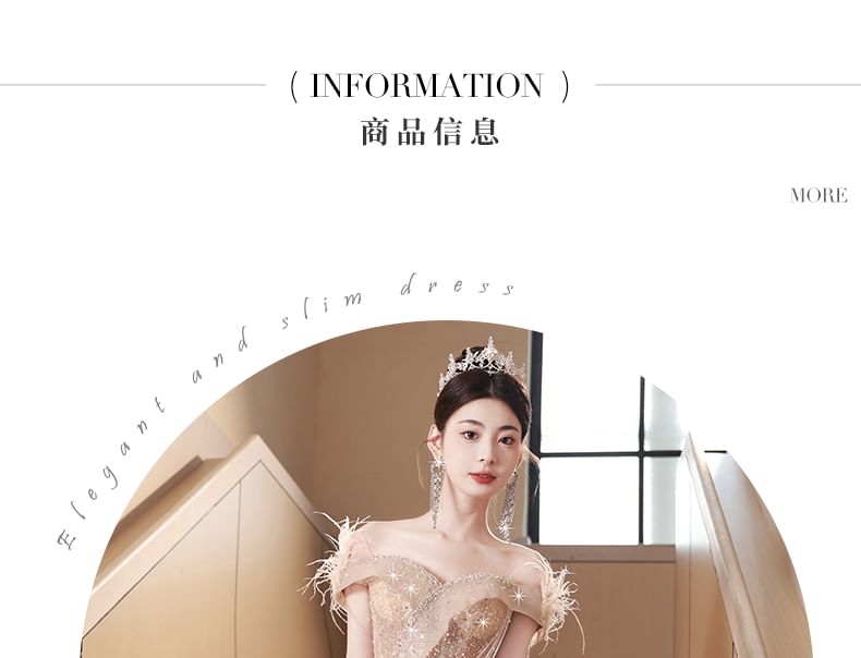 Sleeveless Off-Shoulder Fringed Sequin Mesh A-Line Evening Gown
