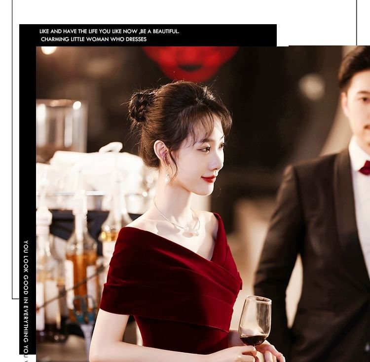 Off-Shoulder Plain A-Line Evening Gown