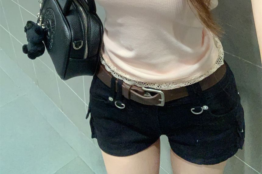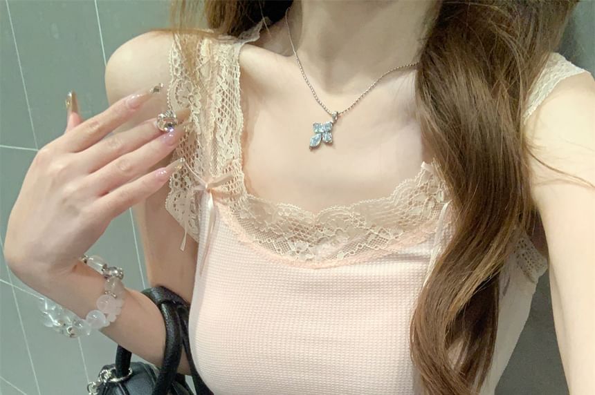 Scoop Neck Lace Panel Bow Accent Slim Fit Crop Tank Top
