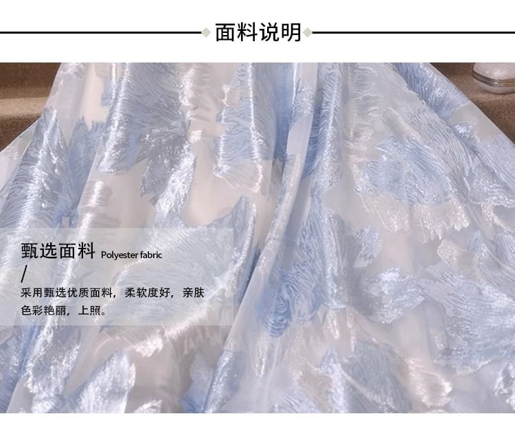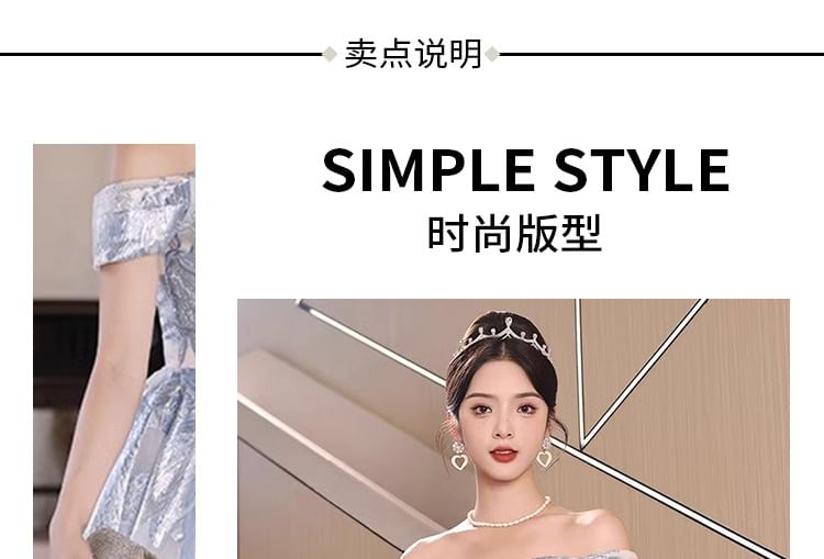 Short-Sleeve Off Shoulder Ruched Jacquard A-Line Evening Gown