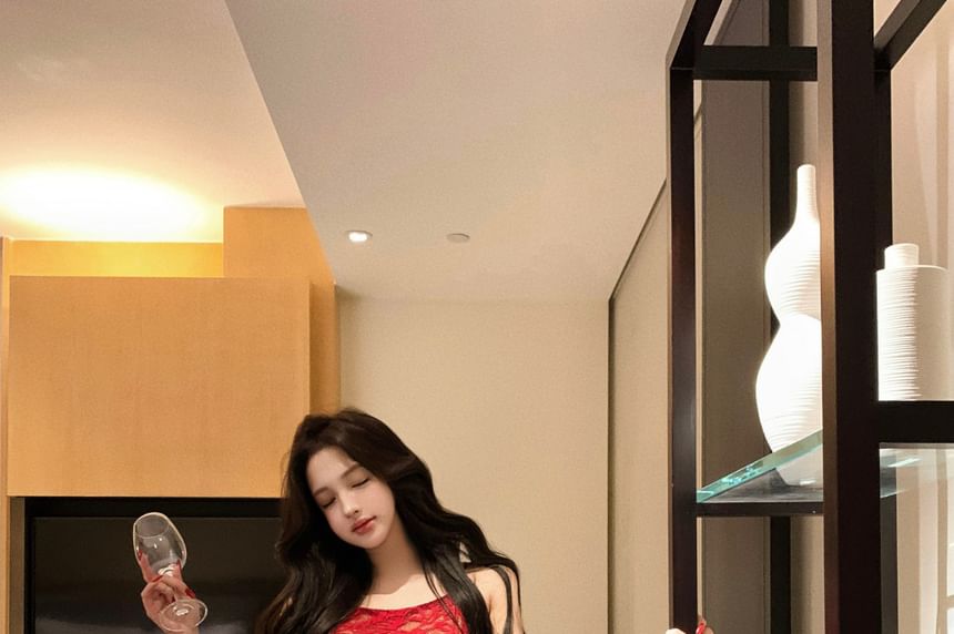 Spaghetti Strap Open Back Lace Bodycon Evening Gown