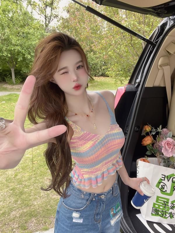 V-Neck Tie Dye Ruffle Hem Crop Camisole Top