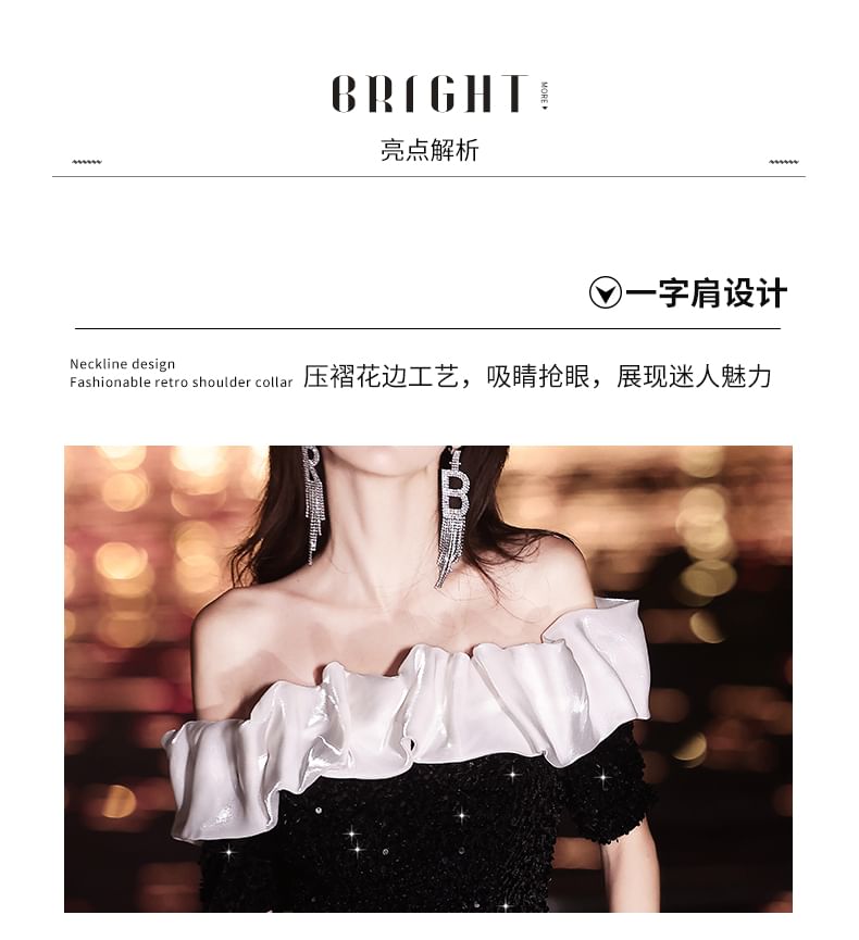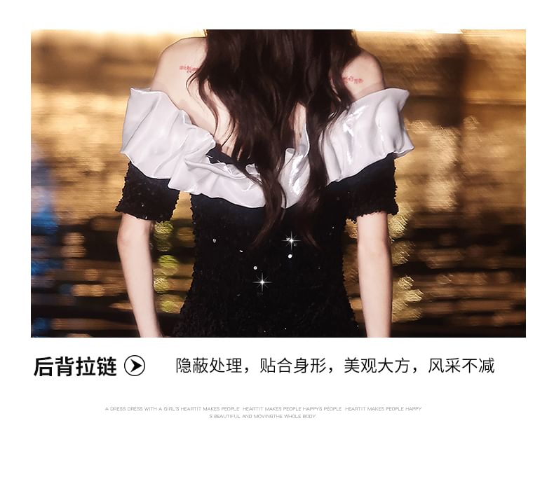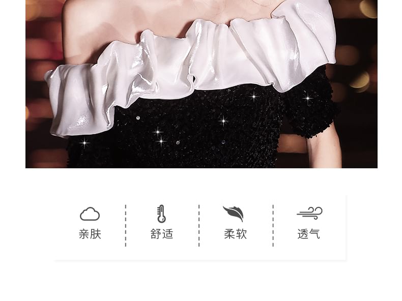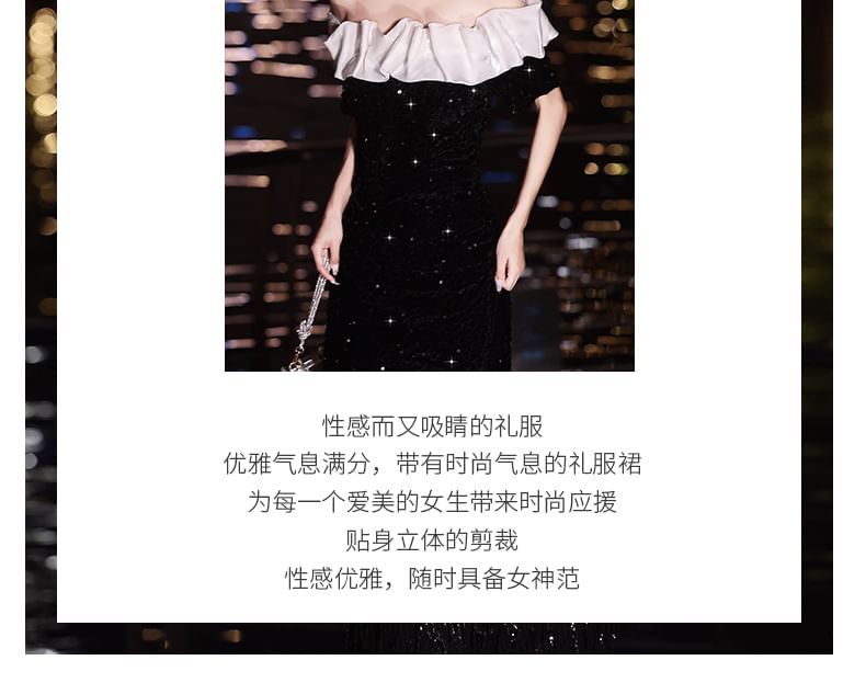 Off-Shoulder Rhinestone Ruffled Mermaid Evening Gown
