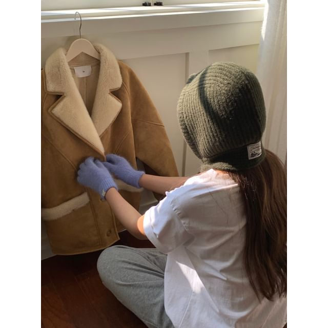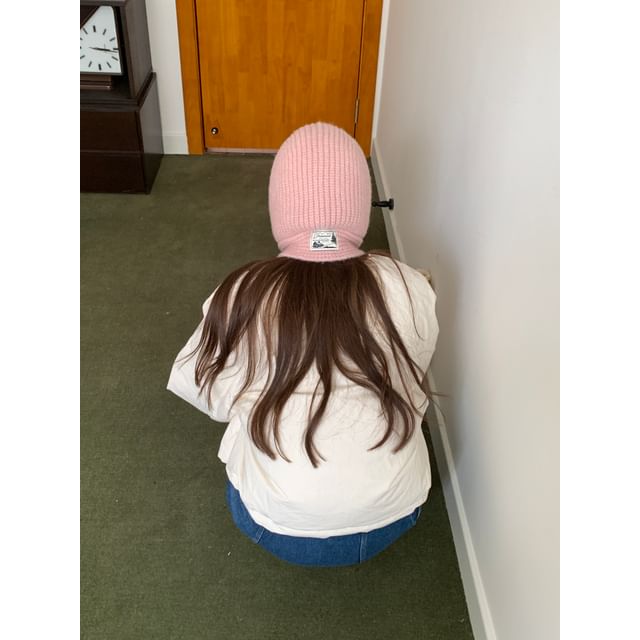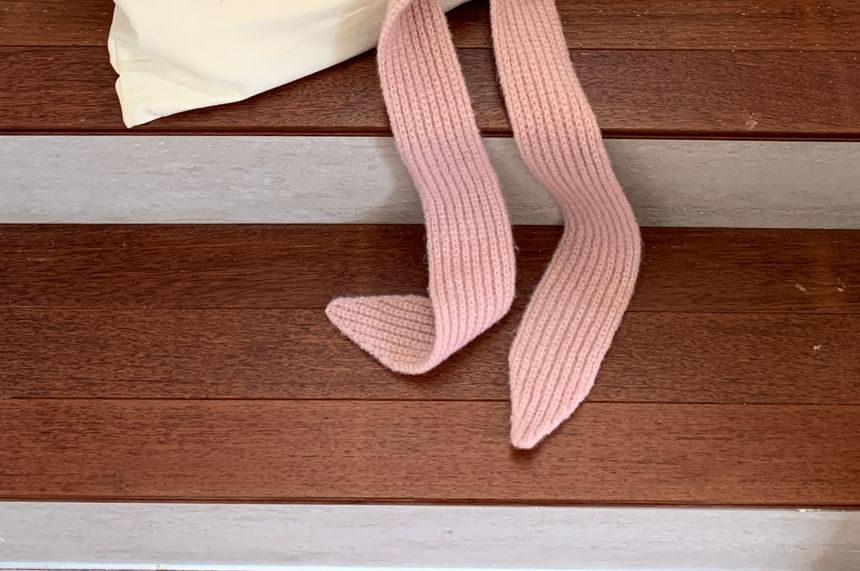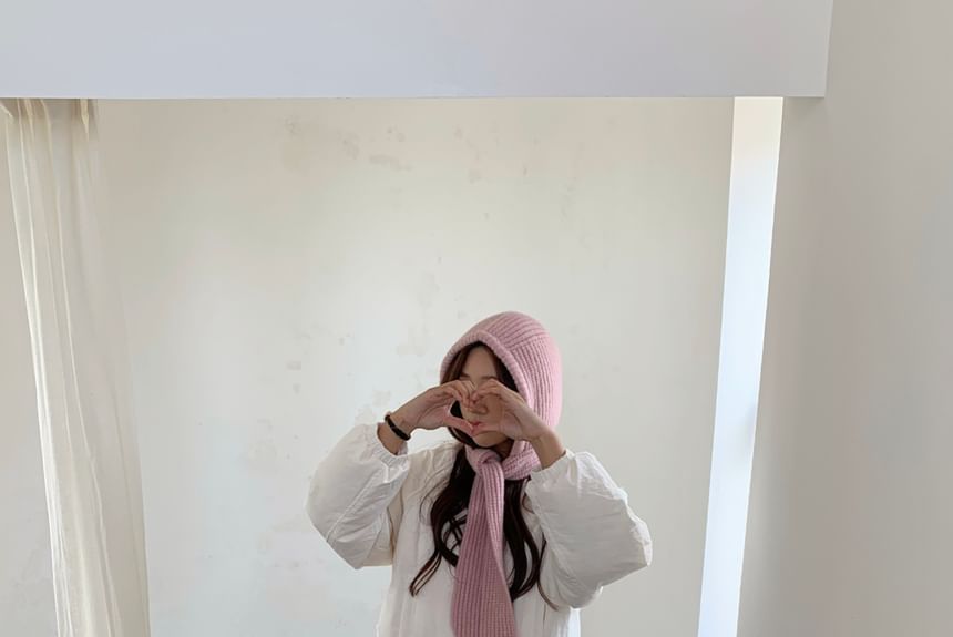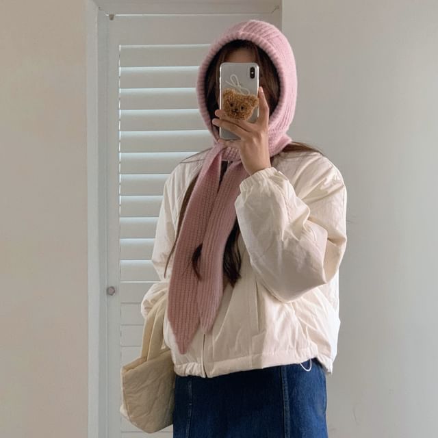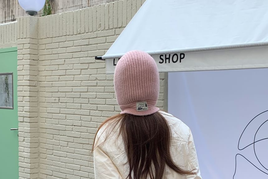 Plain Applique Lace-Up Ribbed Knit Balaclava