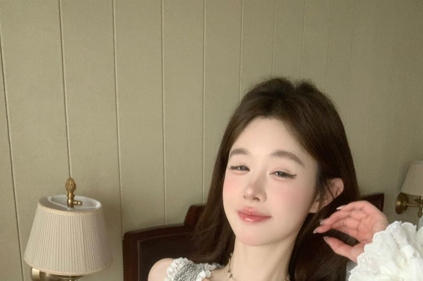 Scoop Neck Lace Trim Crop Slim Fit Tank Top