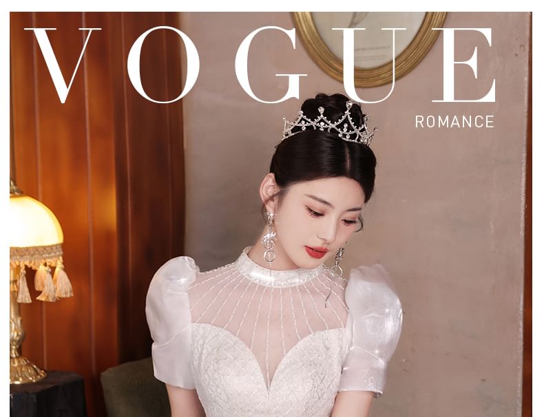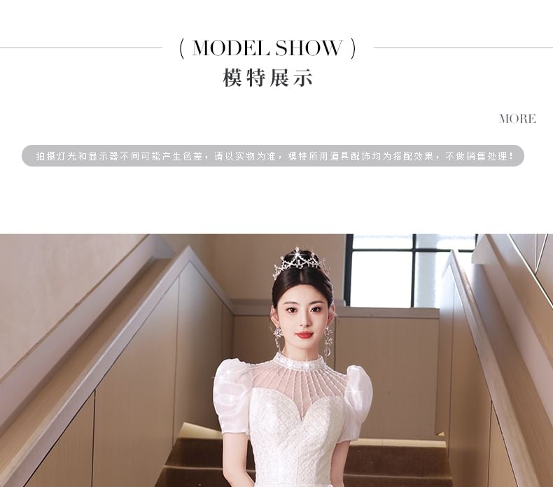 Sequin Beaded Short-Sleeve Wedding Gown Mermaid