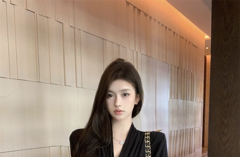 Shawl Tie Plain Waist Cardigan Collar