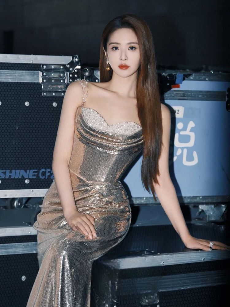 Chain Strap Sequin Ruched Panel Sheath Evening Gown