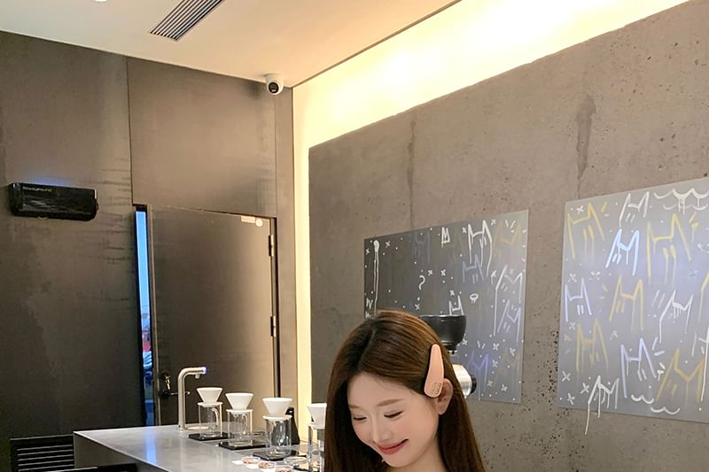 Short-Sleeve V-Neck Twisted Plain Crop Top