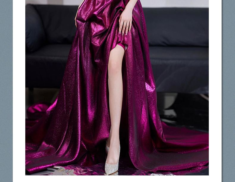 Sleeveless A-Line Sequined Gown V-Neck Evening