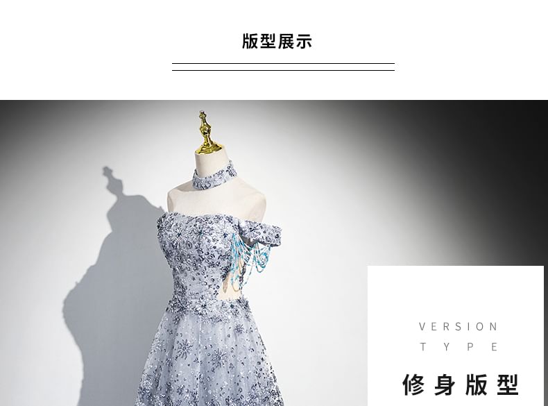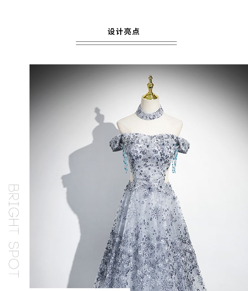 Sleeveless Off-Shoulder Floral Sequin Cutout A-Line Evening Gown