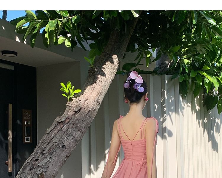 Spaghetti Strap V-Neck Plain Ruffle Trim Maxi A-Line Dress