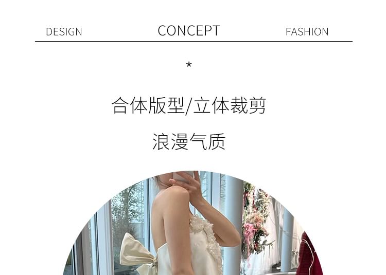 Strapless Gown Back Floral Accent Trained Satin Bow Plain Wedding A-Line