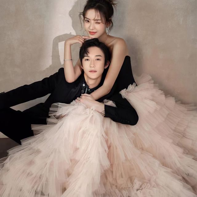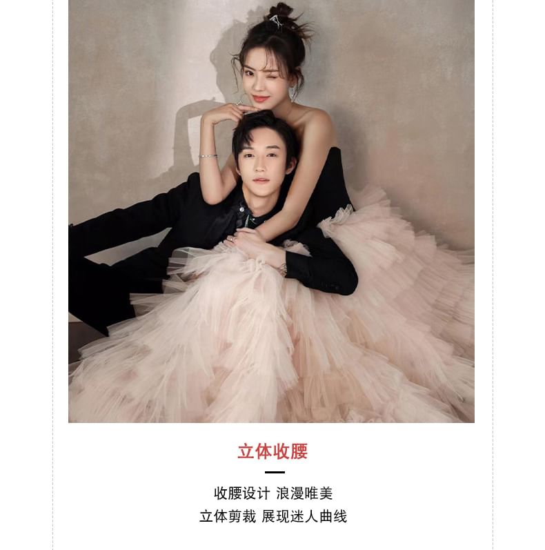 Strapless Two Tone Ruffle A-Line Ball Gown