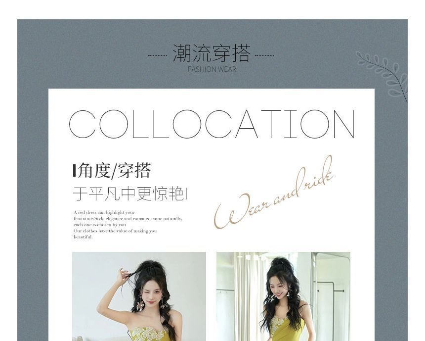 Floral Applique Ruched Slit A-Line Tube Evening Gown