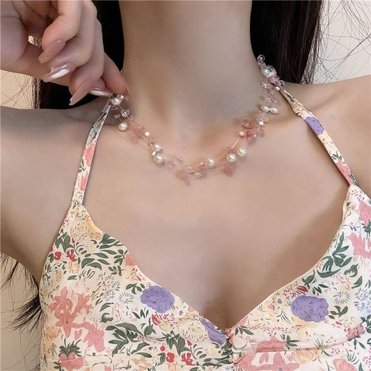 Faux Pearl Gourd Rhinestone Pendant Necklace