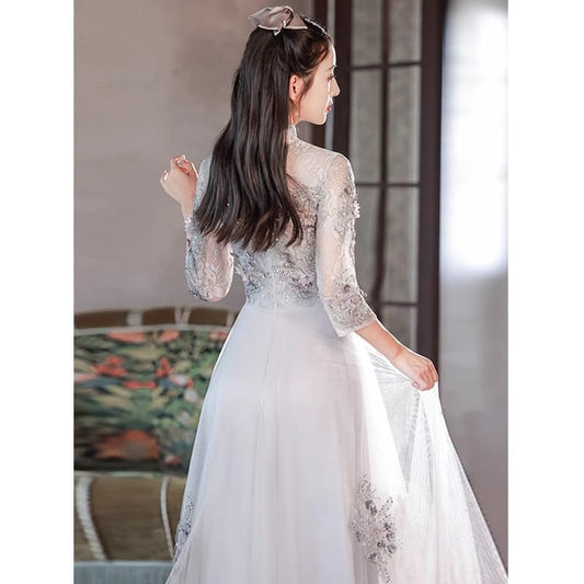 3/4 Sleeve Embroidered Qipao Dress